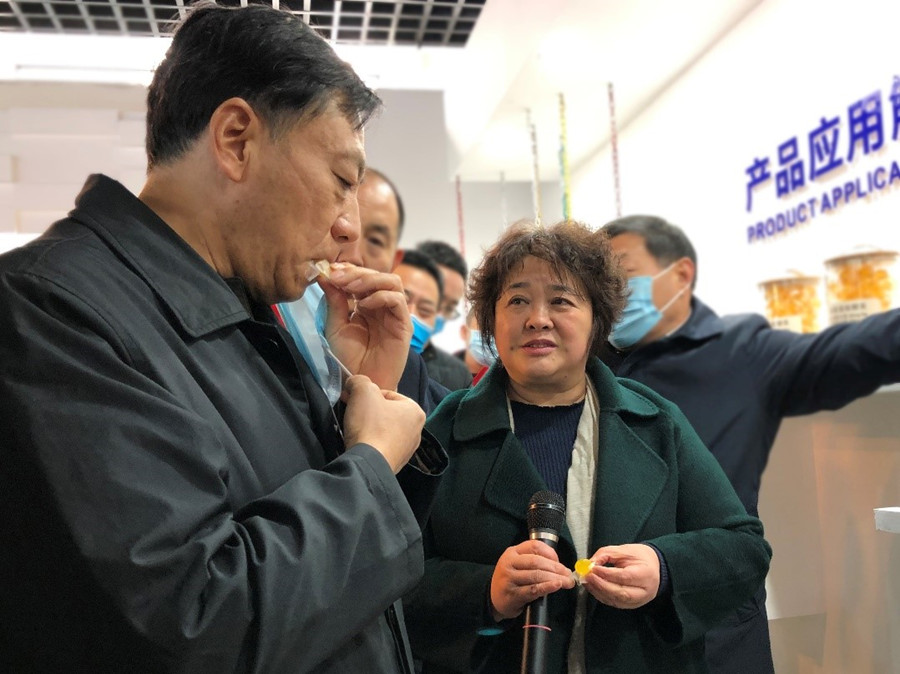 在公司產品展臺,張維寧副主任詳細了解了公司在產品應用解決方案、天然提取物活性成分研發和天然保健食品開發情況,并饒有興趣地品嘗了公司開發的糖果、天然飲品,稱贊公司的產品“不但色味俱佳,而且有益健康,真正抓住了大眾的消費需求,一定會越來越受到市場的歡迎”。