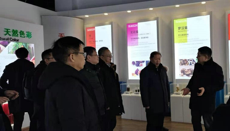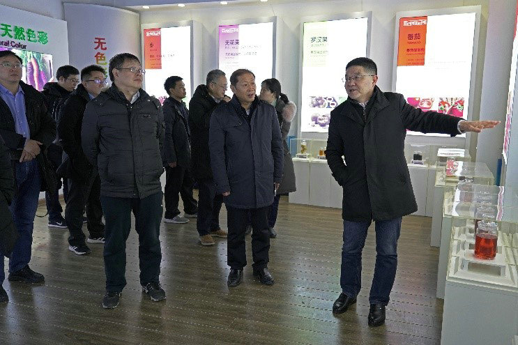 考察團一路風塵仆仆,沒有多余的寒暄,沒有片刻的歇息,就在李總的帶領下來到中大恒源“中國天然植物提取體驗館”參觀。李總首先介紹了中大恒源的原料生產基地、天然色素、天然健康提取物、天然香精香料、生物替抗、植物染料等天然植物提取系列產品,看著色彩斑斕、琳瑯滿目的產品,令長期奮斗在教學科研第一線的專家、教授們感到驚奇:“沒有想到一個企業能夠心系民族產業,心系人類健康,把天然植物提取做得這么深、這么細、這么廣,真了不起!”